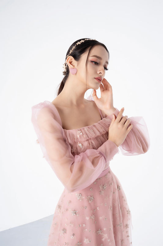 Hayley Flared Long Sleeved Organza Ankle Length Dress