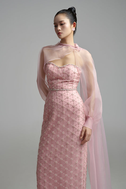 Olson Mermaid Cape Shoulder Organza Floor Length Dress