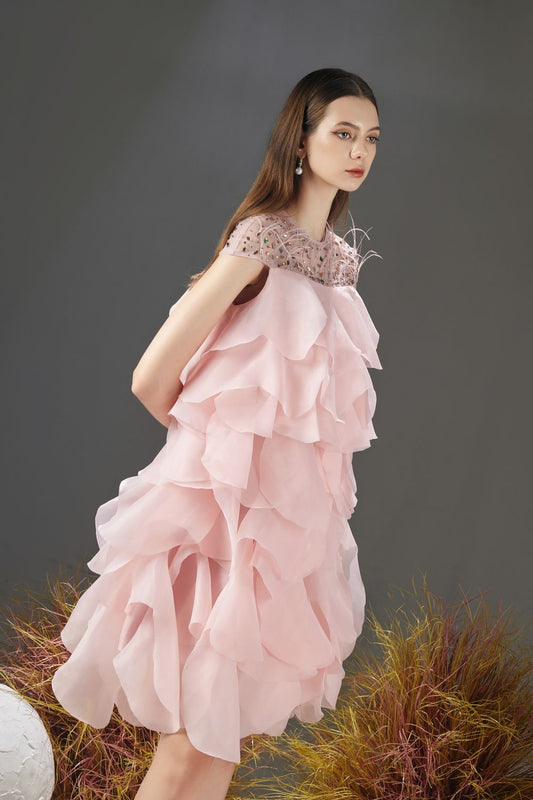 Florence A-line Cold Shoulder Sleeved Organza Midi Dress