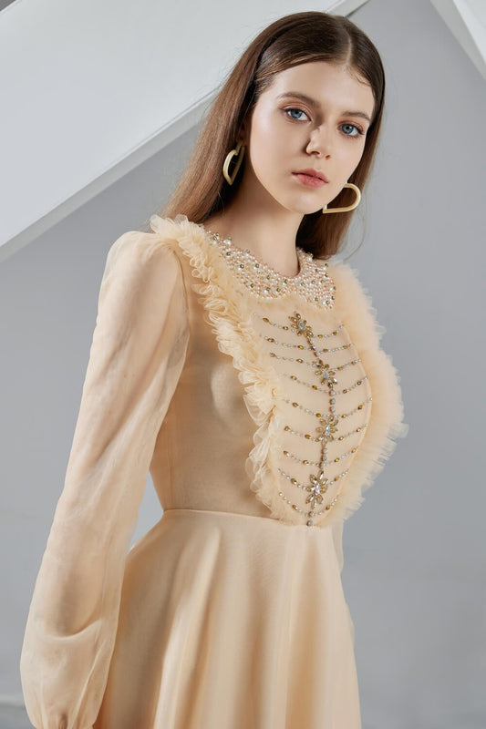 Hayley Flared Long Sleeved Organza Ankle Length Dress