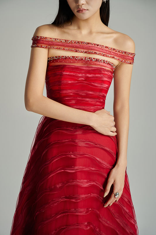 Ainsley Ball Gown Off-Shoulder Organza Maxi Dress