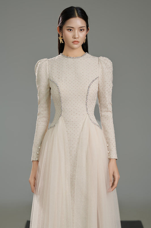 Cardenas A-line Puffy Sleeved Polyester Ankle Length Dress