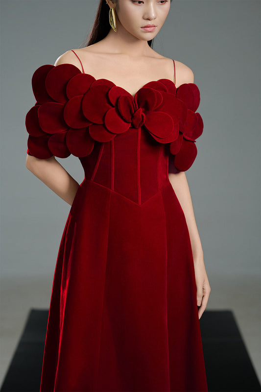 Guevara A-line Cold Shoulder Sleeved Polyester Ankle Length Dress