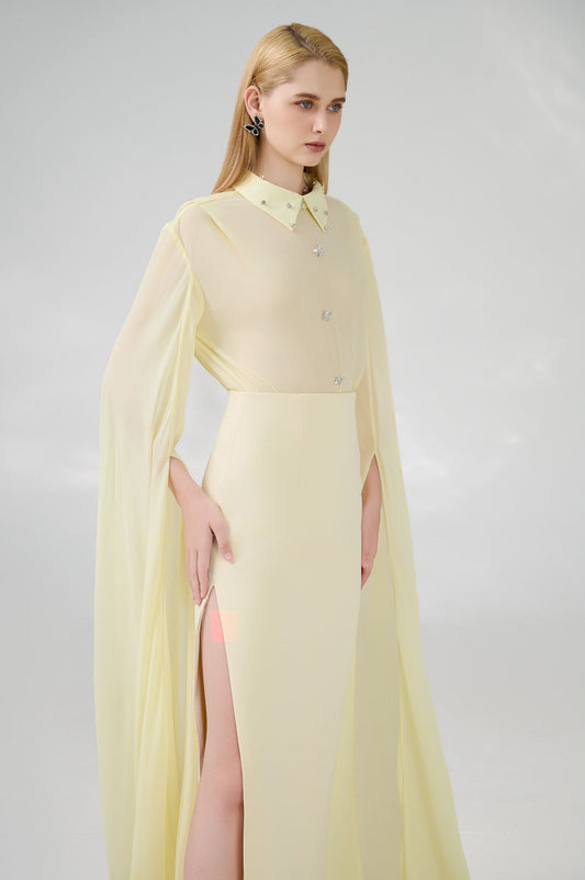 Jaliyah Sheath Hanging Sleeved Chiffon Floor Length Set