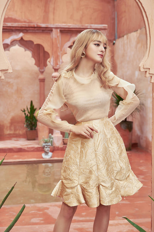 Jovita A-line Puffy Sleeved Organza Mini Dress