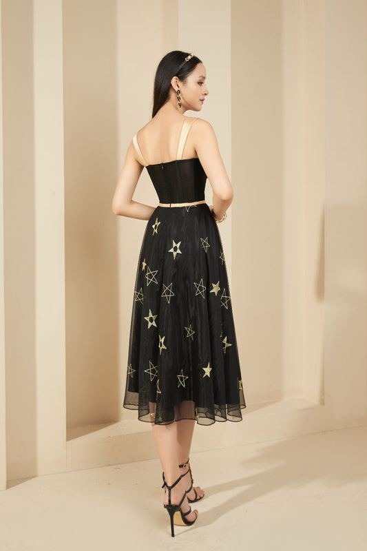 Mariam Straight Flare Sleeved Organza Midi Dress
