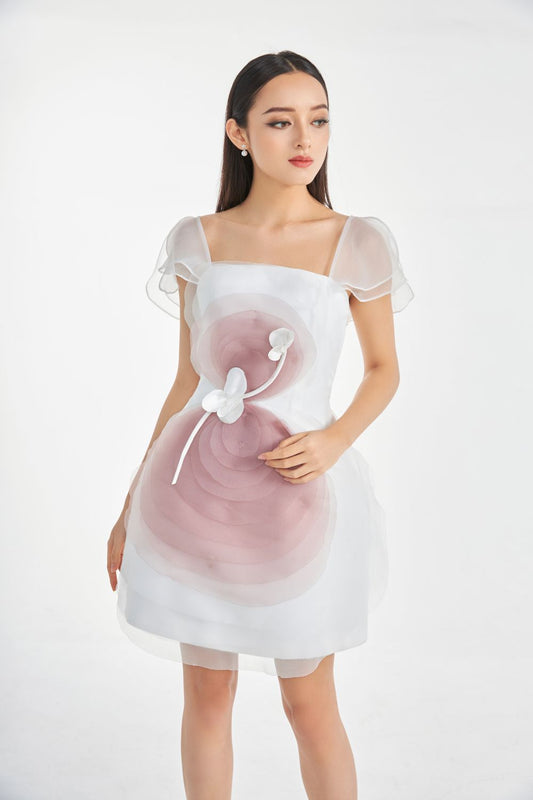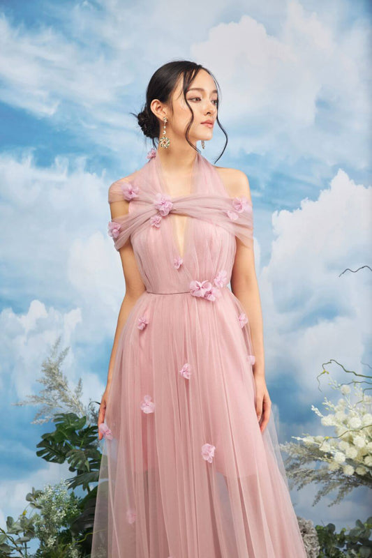 Zariyah Slit Open Shoulder Organza Midi Dress