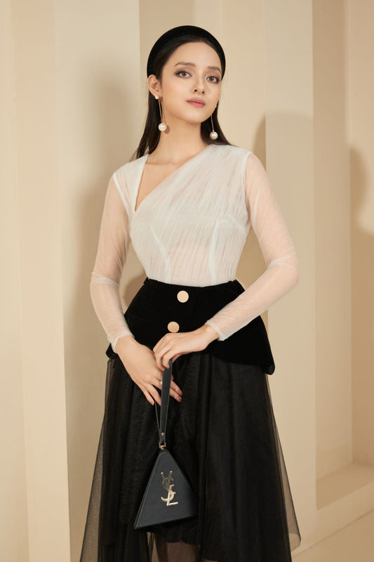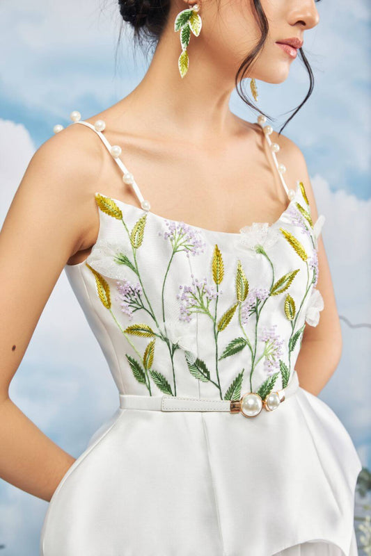 Brianna Sheath Flower Applique Silk Organza Floor Length Ao Dai