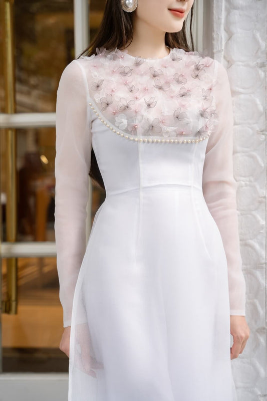 Isabelle Fitted Flower Applique Organza Long Length Ao Dai