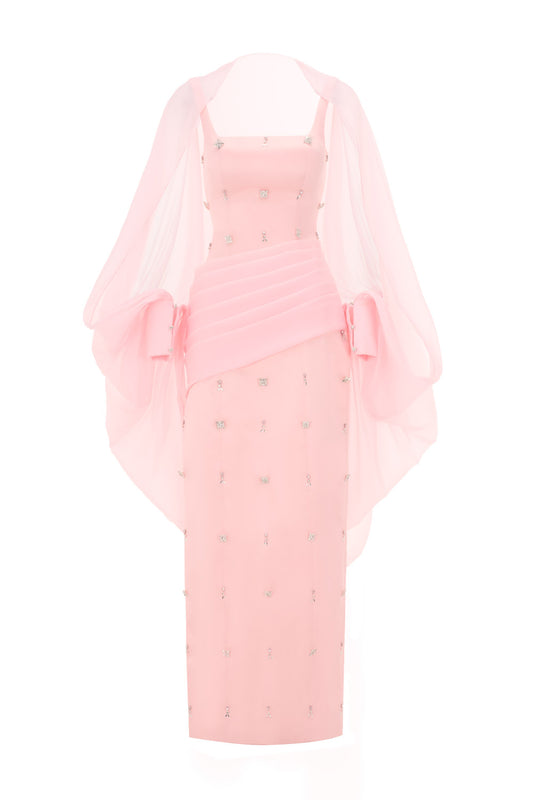 Hayley Flared Long Sleeved Organza Ankle Length Dress