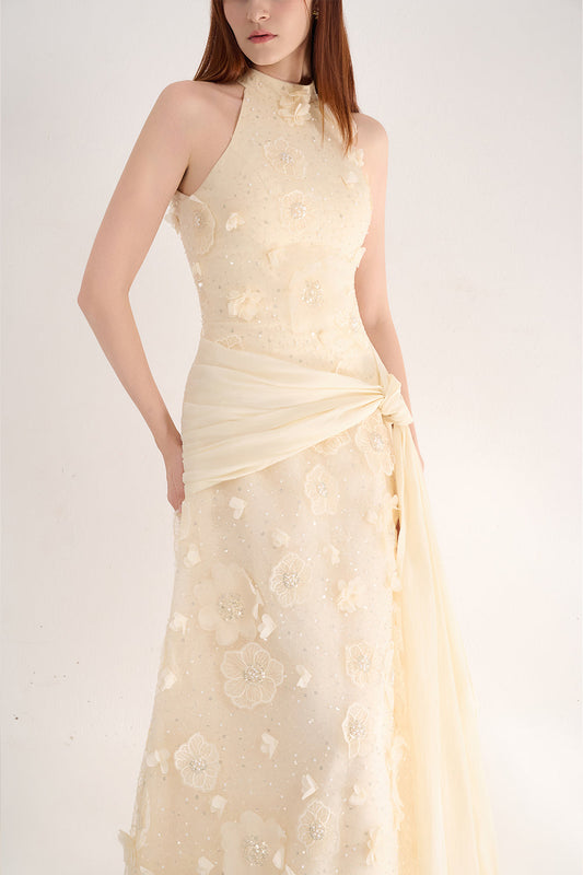 Jovie A-line Halter Neck Polyester Maxi Dress