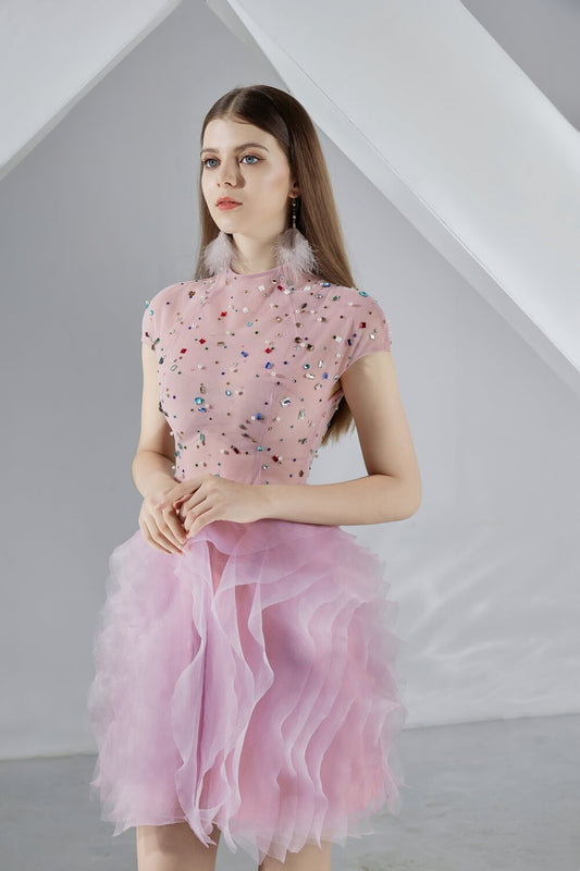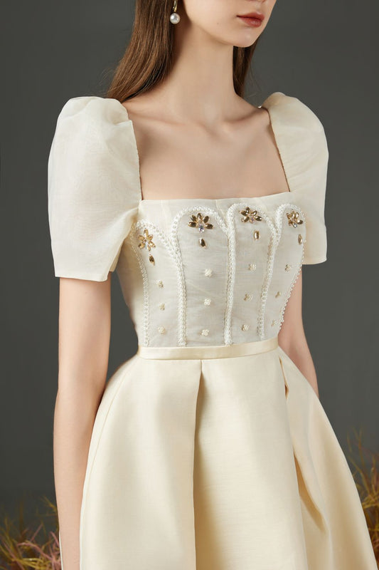 Jazmin Puffy Short Sleeved Organza Mini Dress