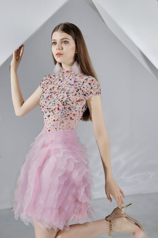 Marilyn A-line Short Sleeved Organza Mini Dress