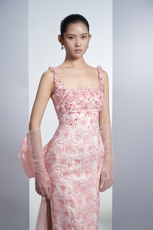 Dangelo Strapless Flower Applique Polyester Floor Length Dress