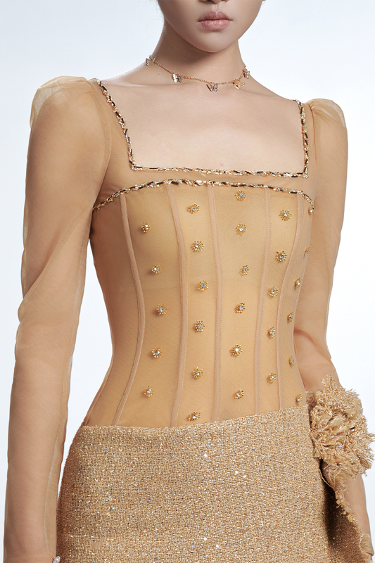 Emersyn Sheath Feather Polyester Floor Length Dress