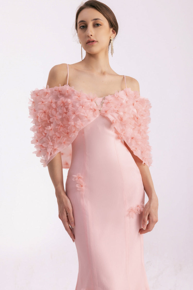Dawson Trumpet Cold Shoulder Sleeved Polyester Floor Length Dress