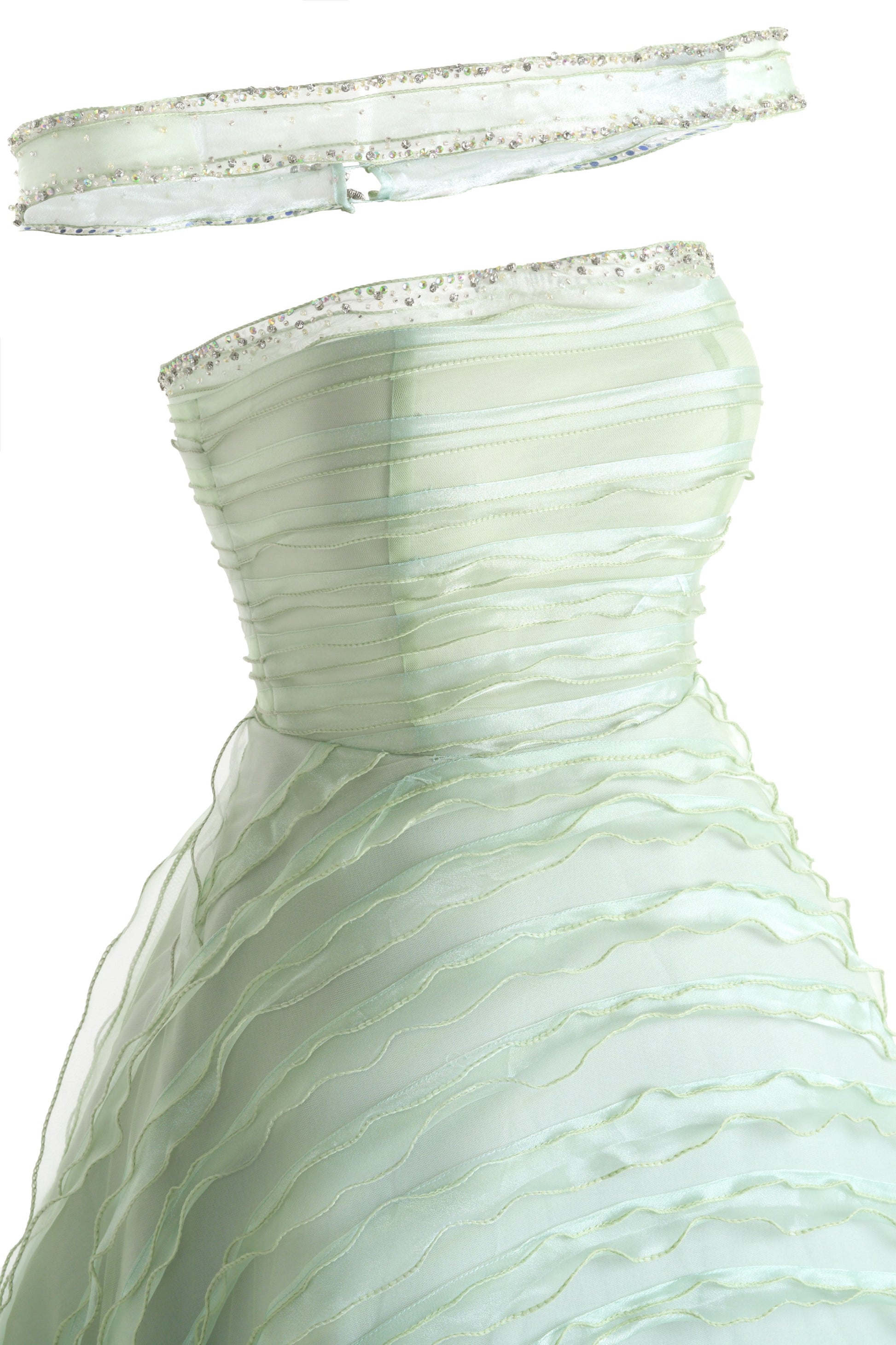 Elevate your elegance with the Light Mint Off Shoulder Organza Maxi Dress – where timeless romance meets modern charm. Crafted from airy organza in a refreshing mint shade, this design features a flattering off-shoulder neckline and a flowing maxi silhouette that captures movement and light. Perfect for destination weddings, special events, or any occasion where you want to feel effortlessly graceful and unforgettable.