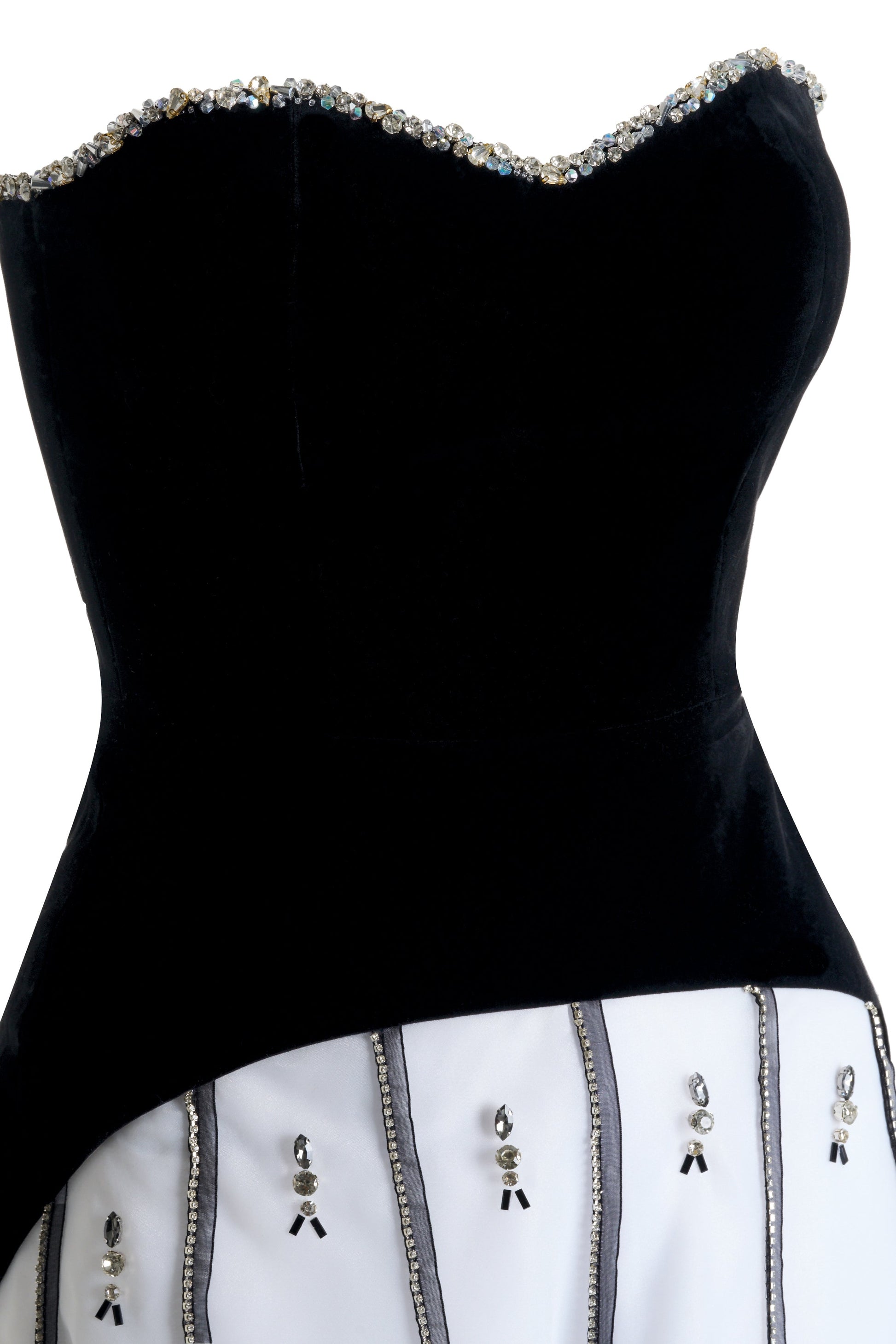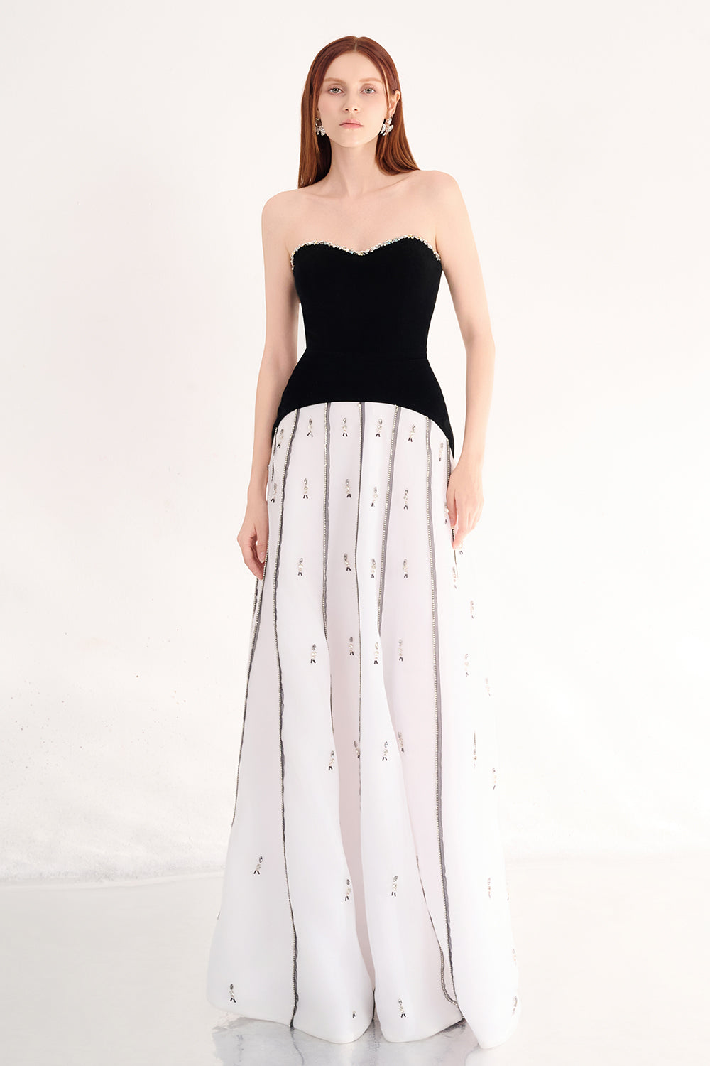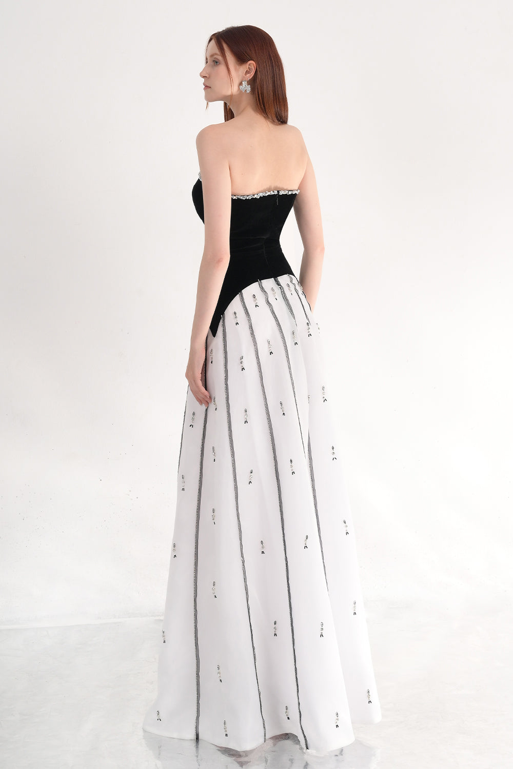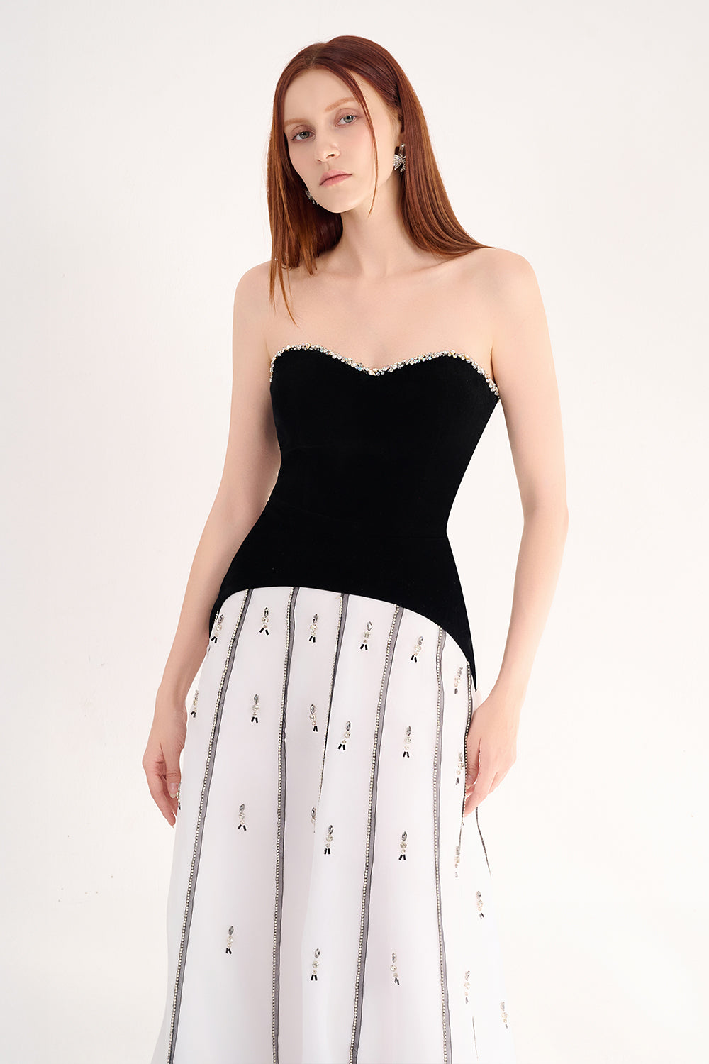 Special Features    Attached rhinestone along the neckline, Two-color contrast, Vertical line detail with crystals