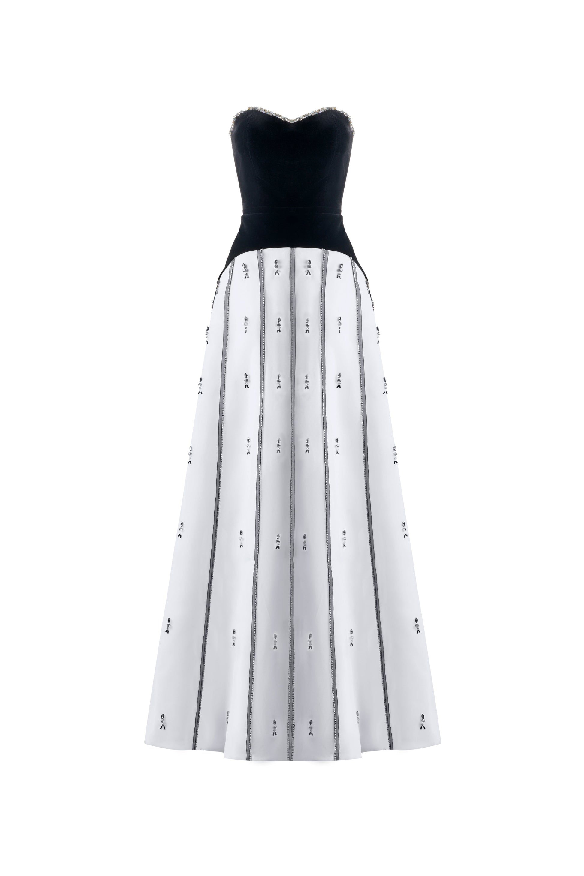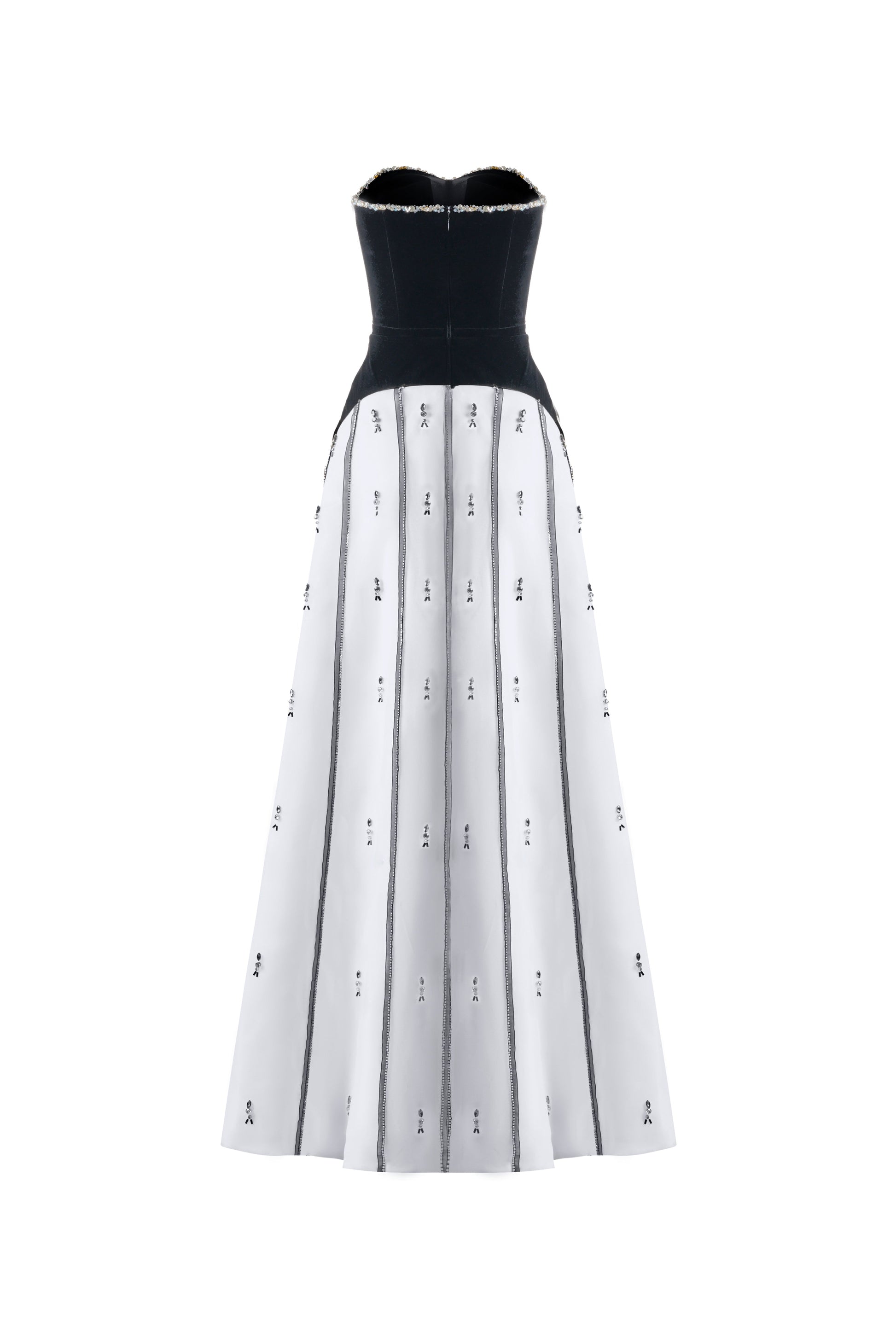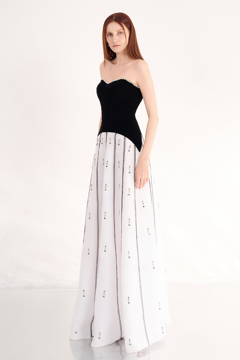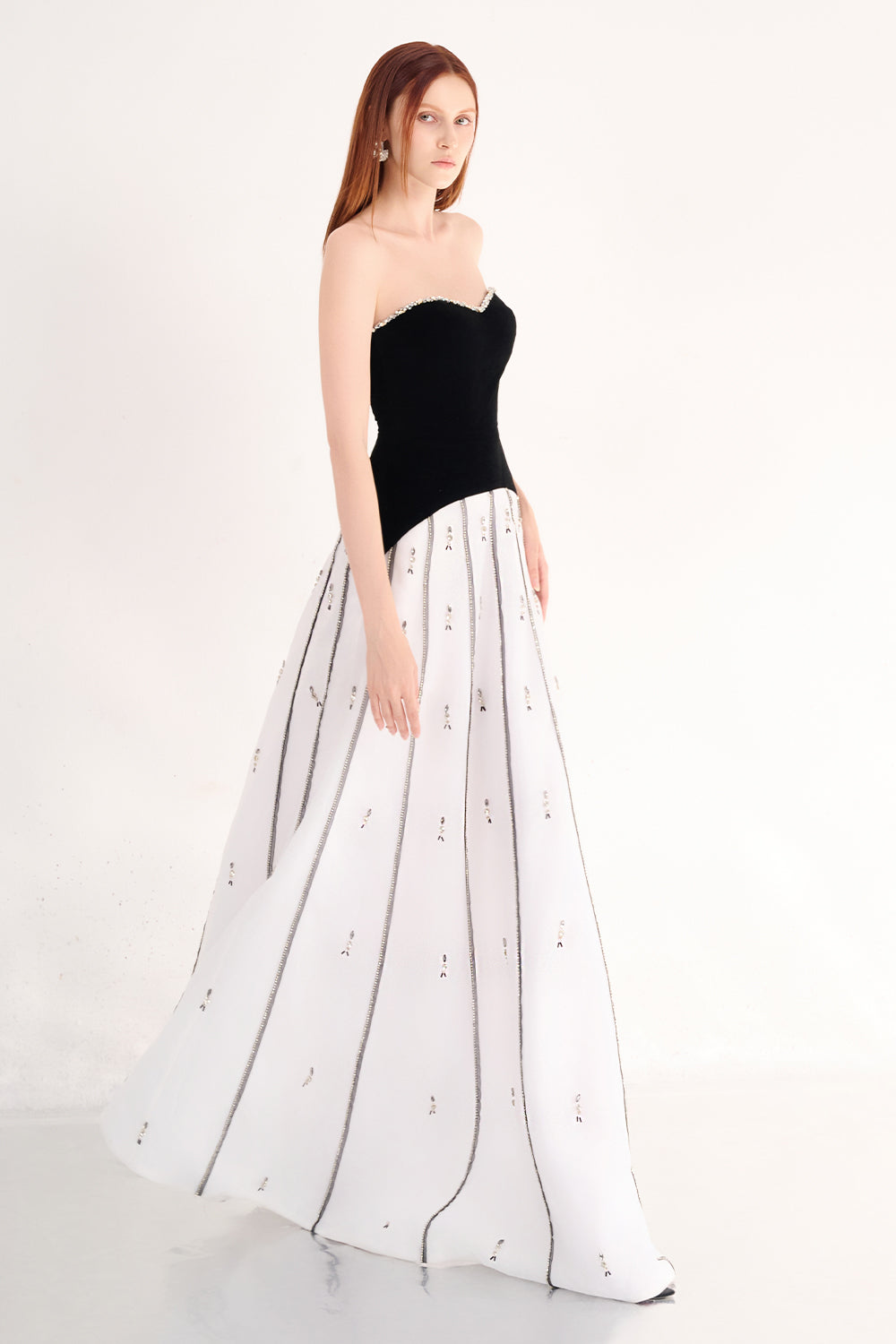 Special Features    Attached rhinestone along the neckline, Two-color contrast, Vertical line detail with crystals