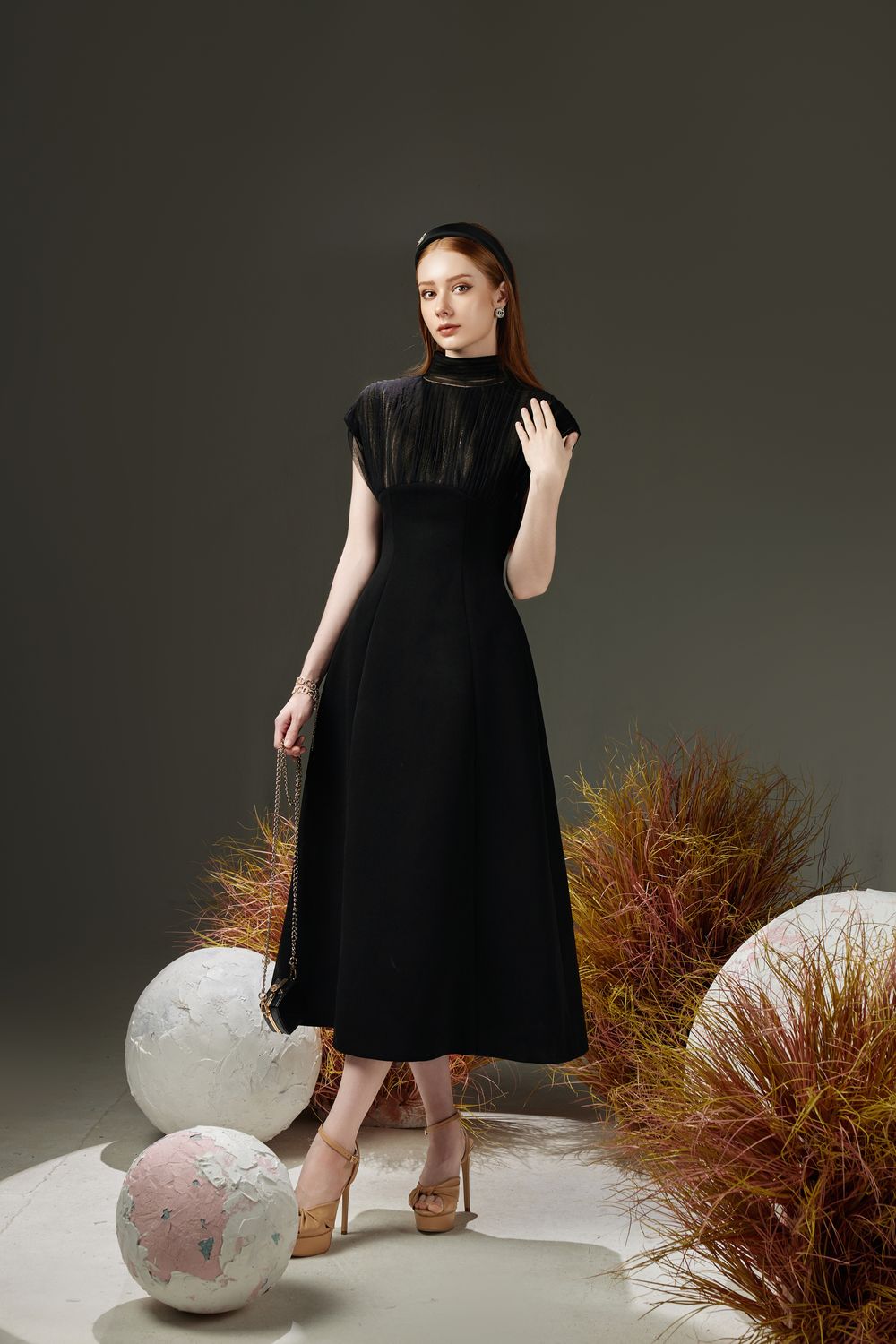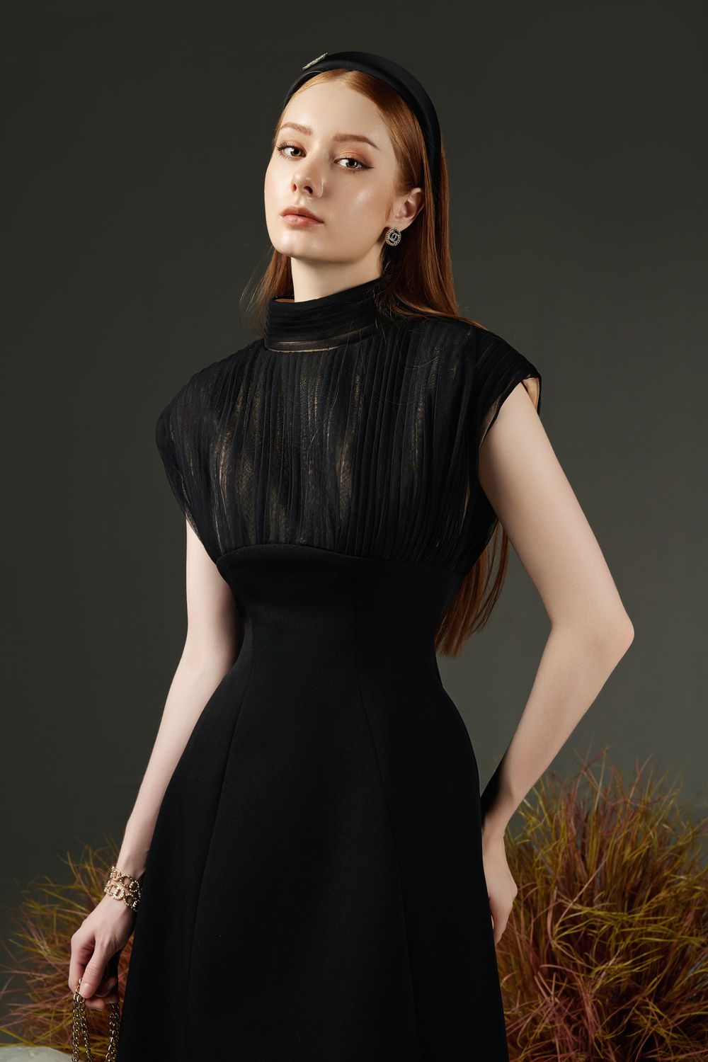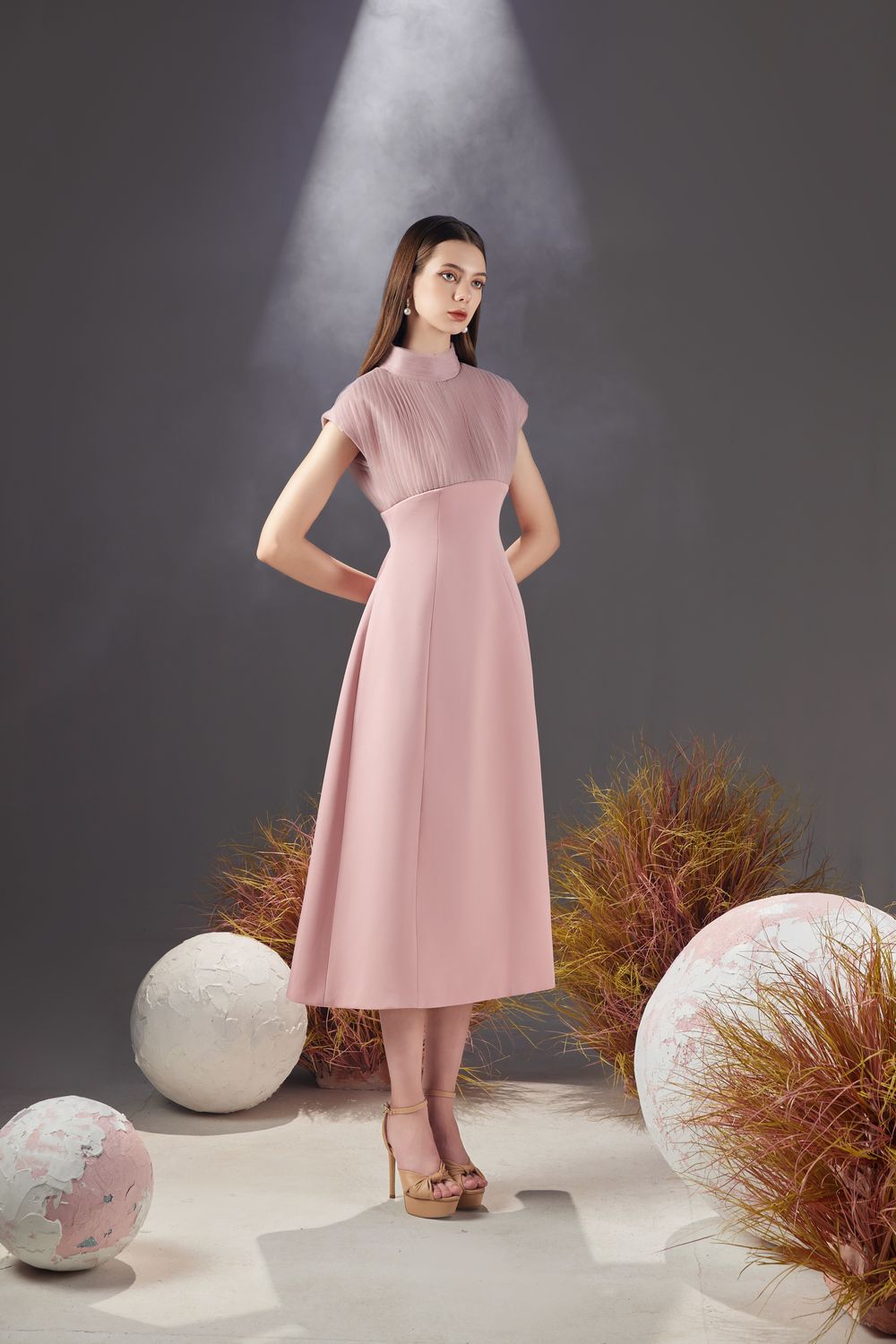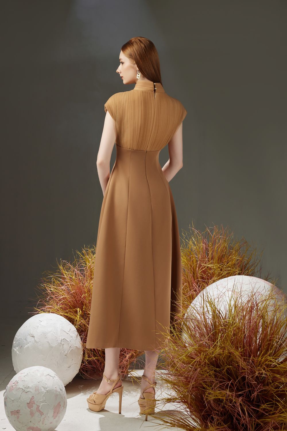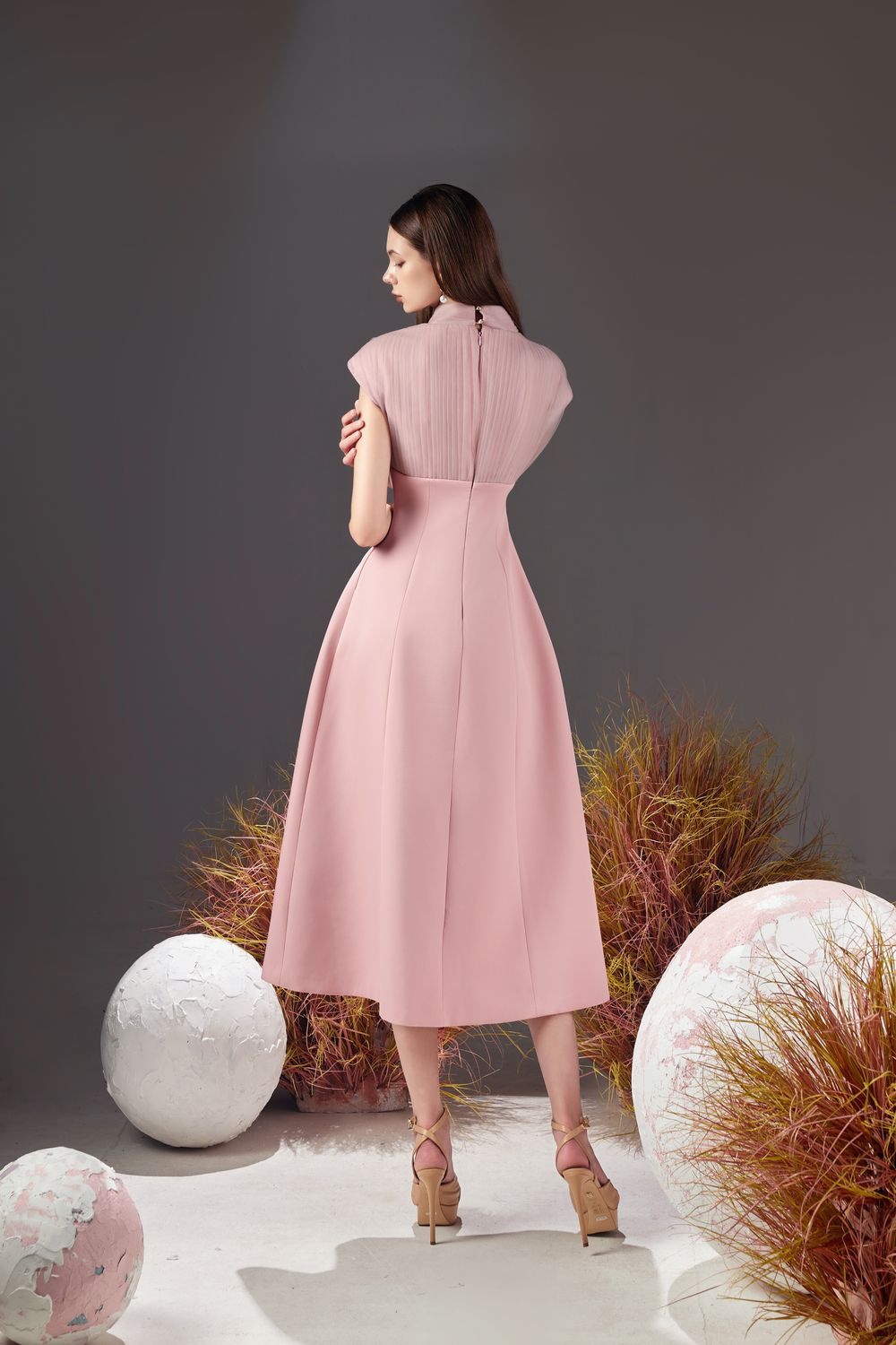 Butler A-line Pleated Chest Taffeta Silk Midi Dress