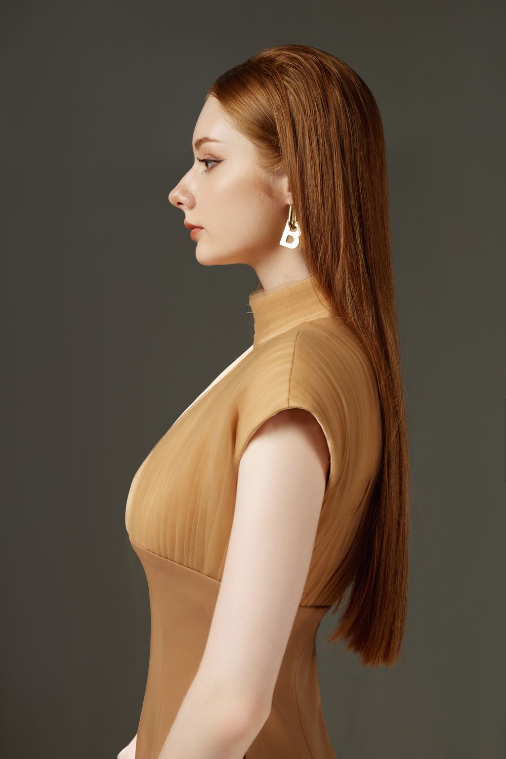This dress is the perfect combination of class and sophistication. The pleated chest adds a subtle touch of elegance, while the taffeta silk fabric ensures you look luxurious and feel comfortable. Make a statement and stand out in this timeless midi dress!