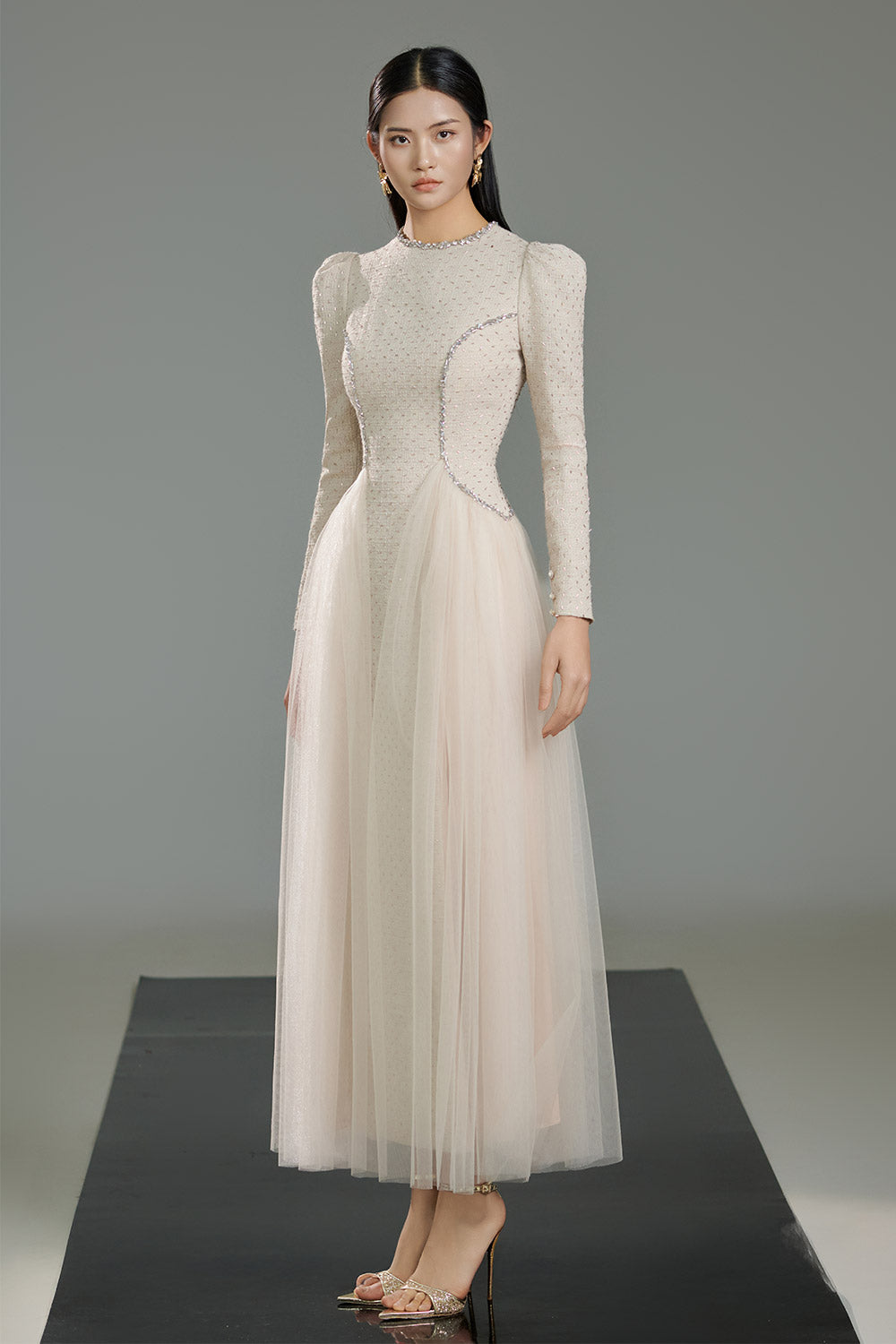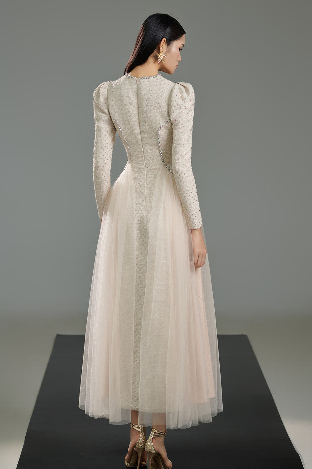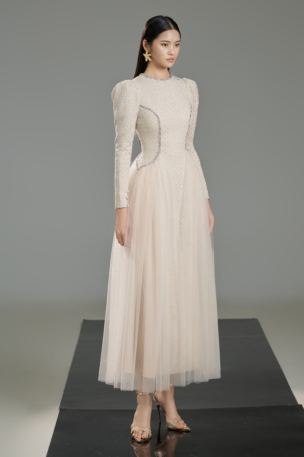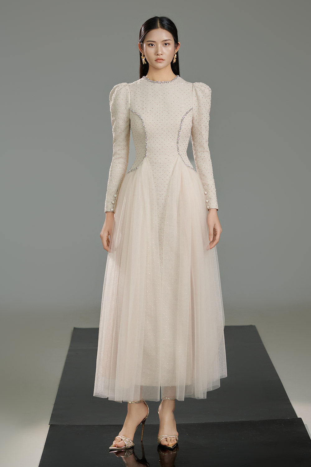 - Special Features: Puffy shoulder, Attached stones on the waist, Gathered on both sides