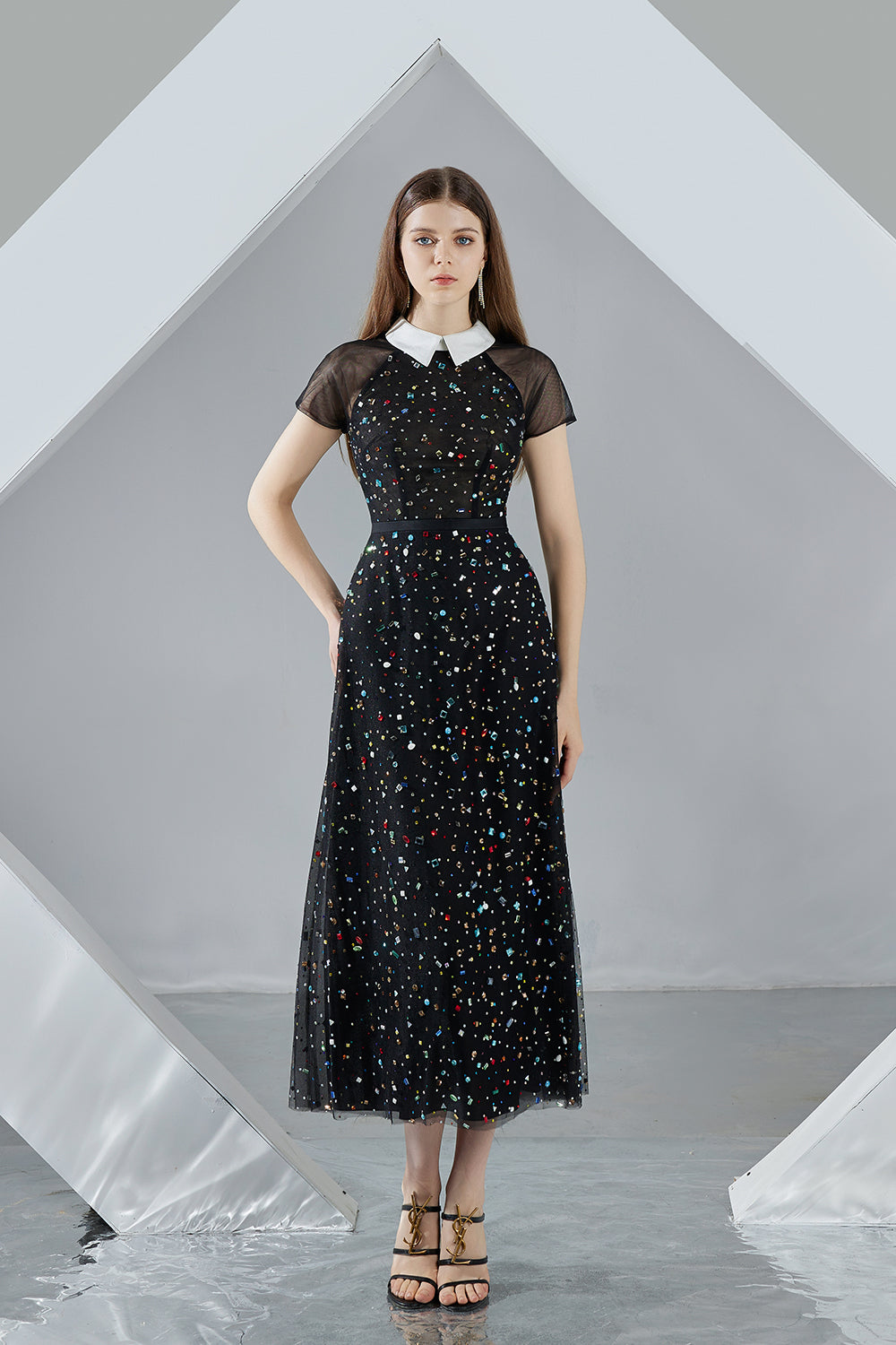 Christina A-line Short Sleeved Mesh Sheer Midi Dress
