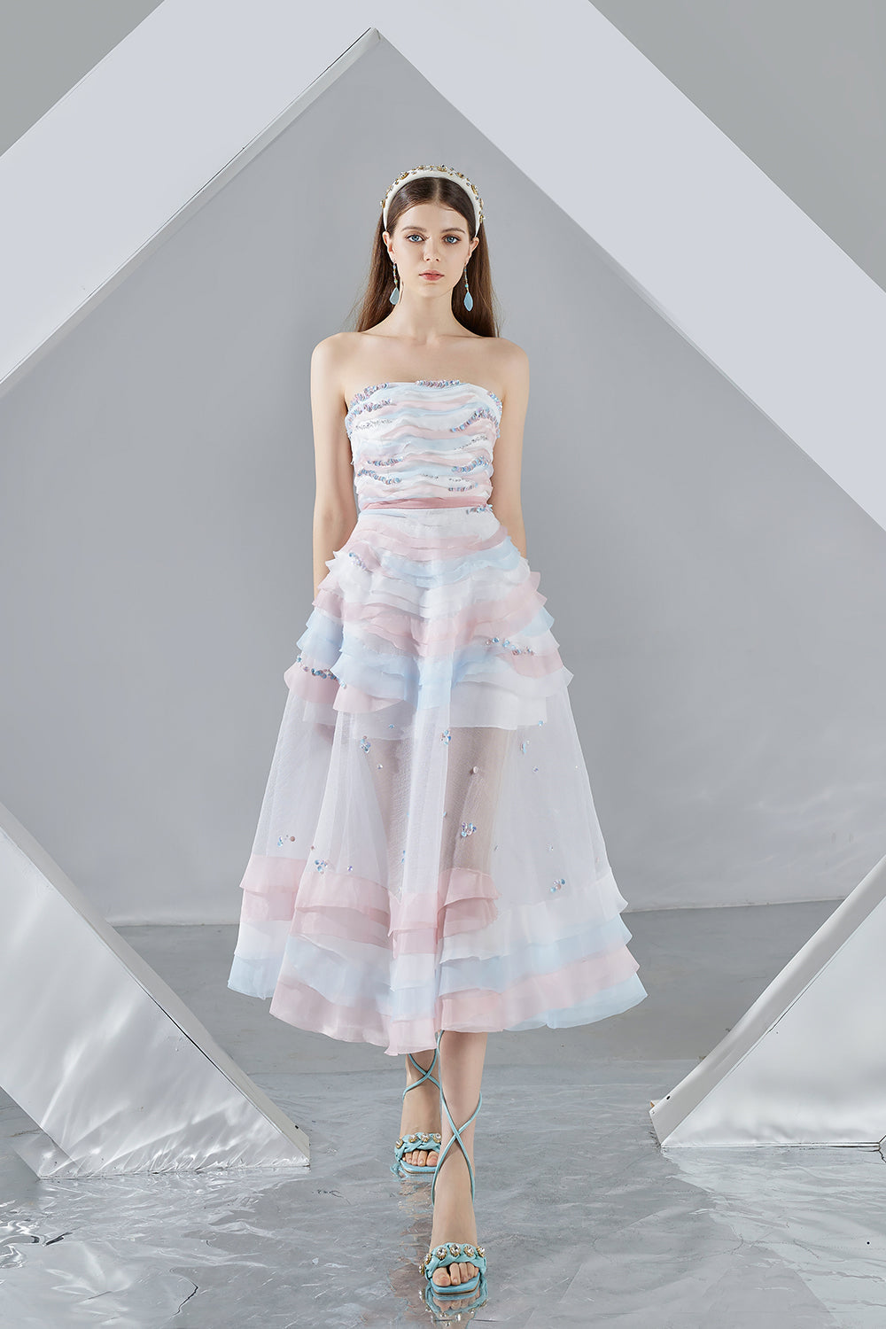 Dallas Strapless Layered Organza Midi Dress