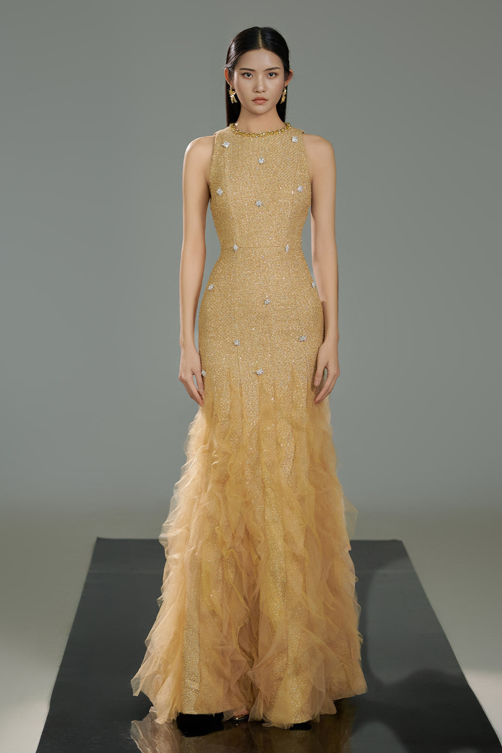 Danielle Trumpet Jewel Neck Polyester Floor Length Dress