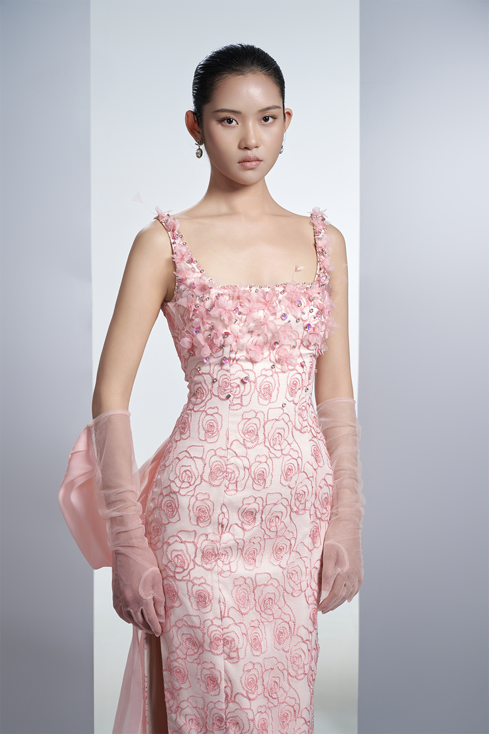 - Special Features: Rose pattern design, Attached 3D rose along neckline, Detachable sheer gloves connet with back flap