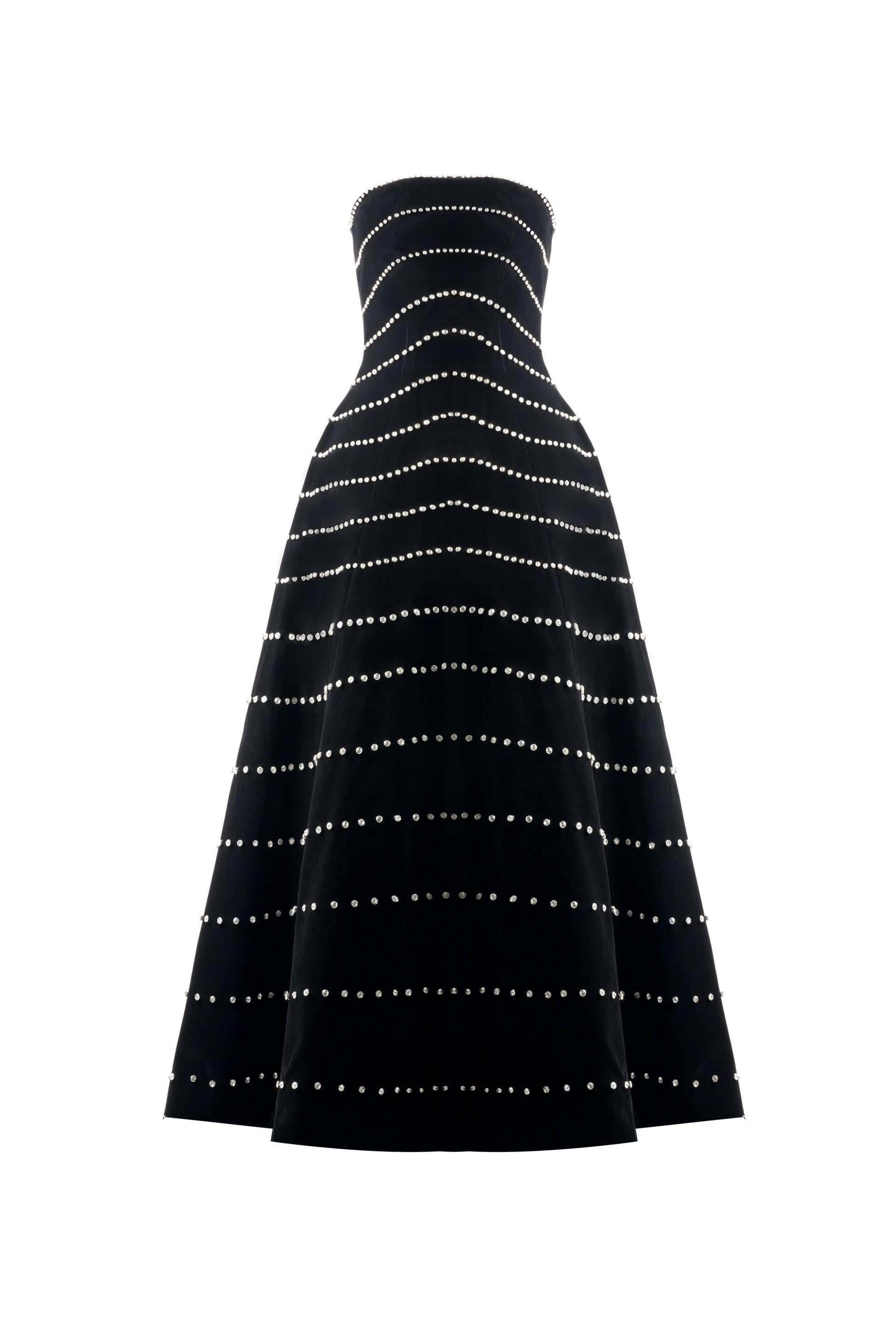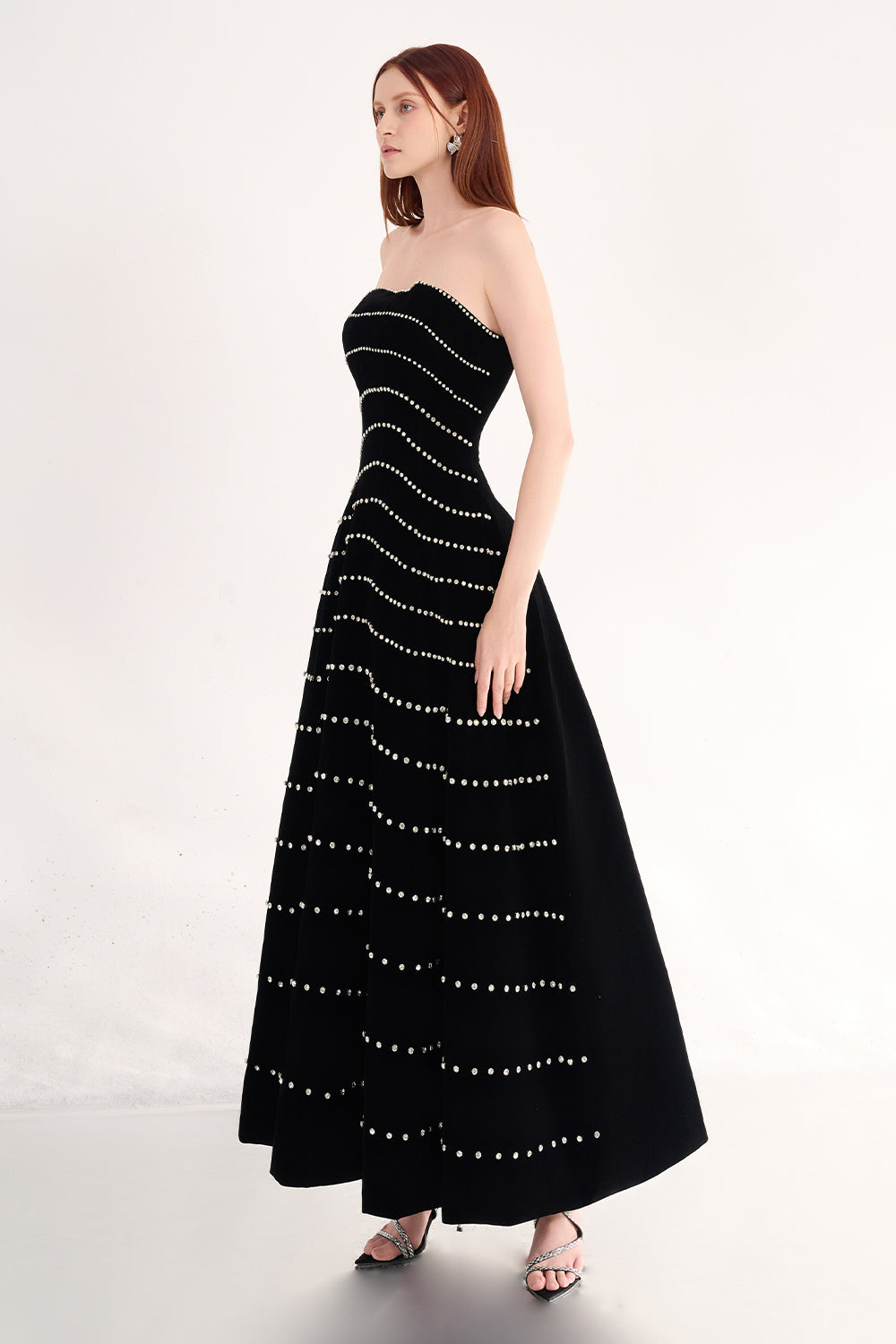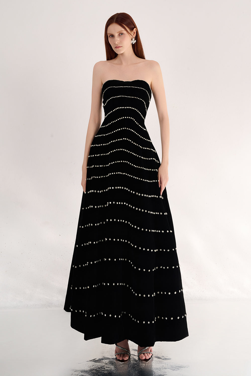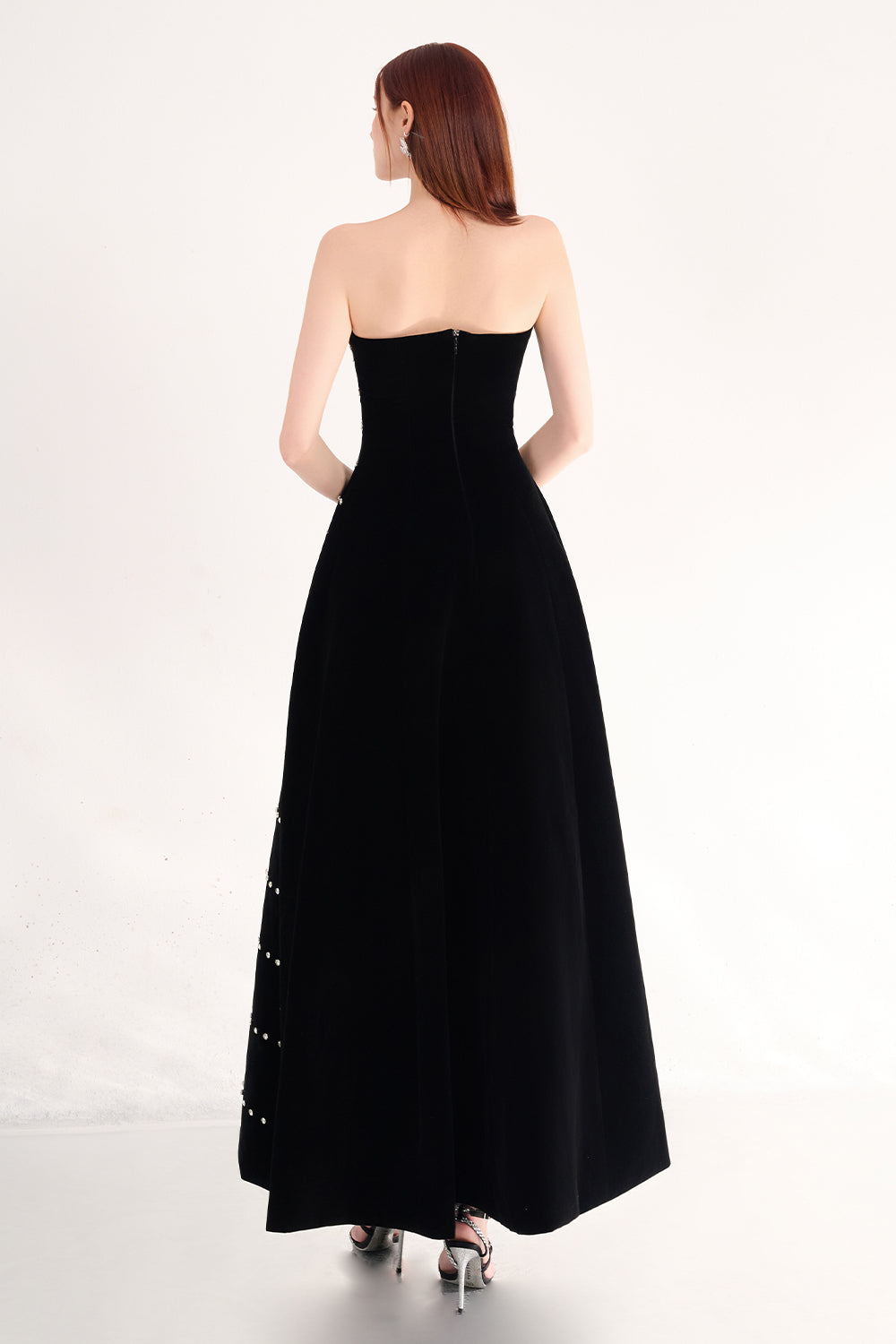 Greta A-line Straight Across Neck Velvet Maxi Dress