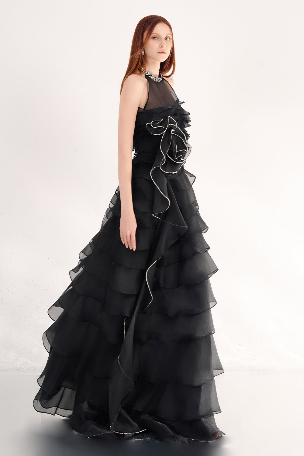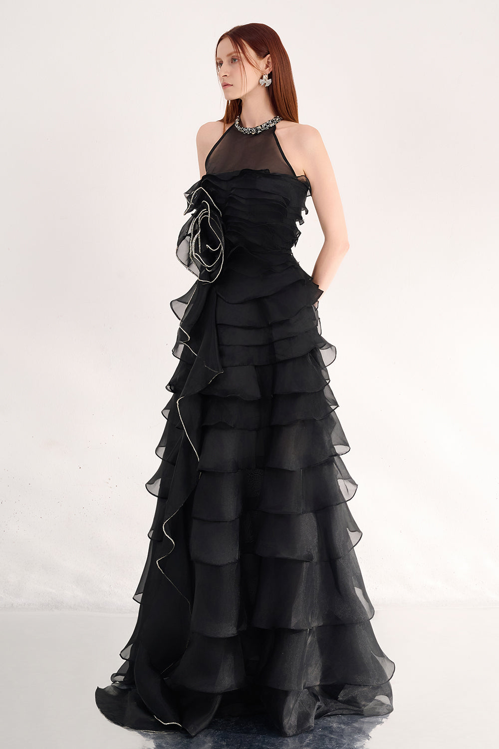 Hadley A-line Ruffle Layer Organza Maxi Dress