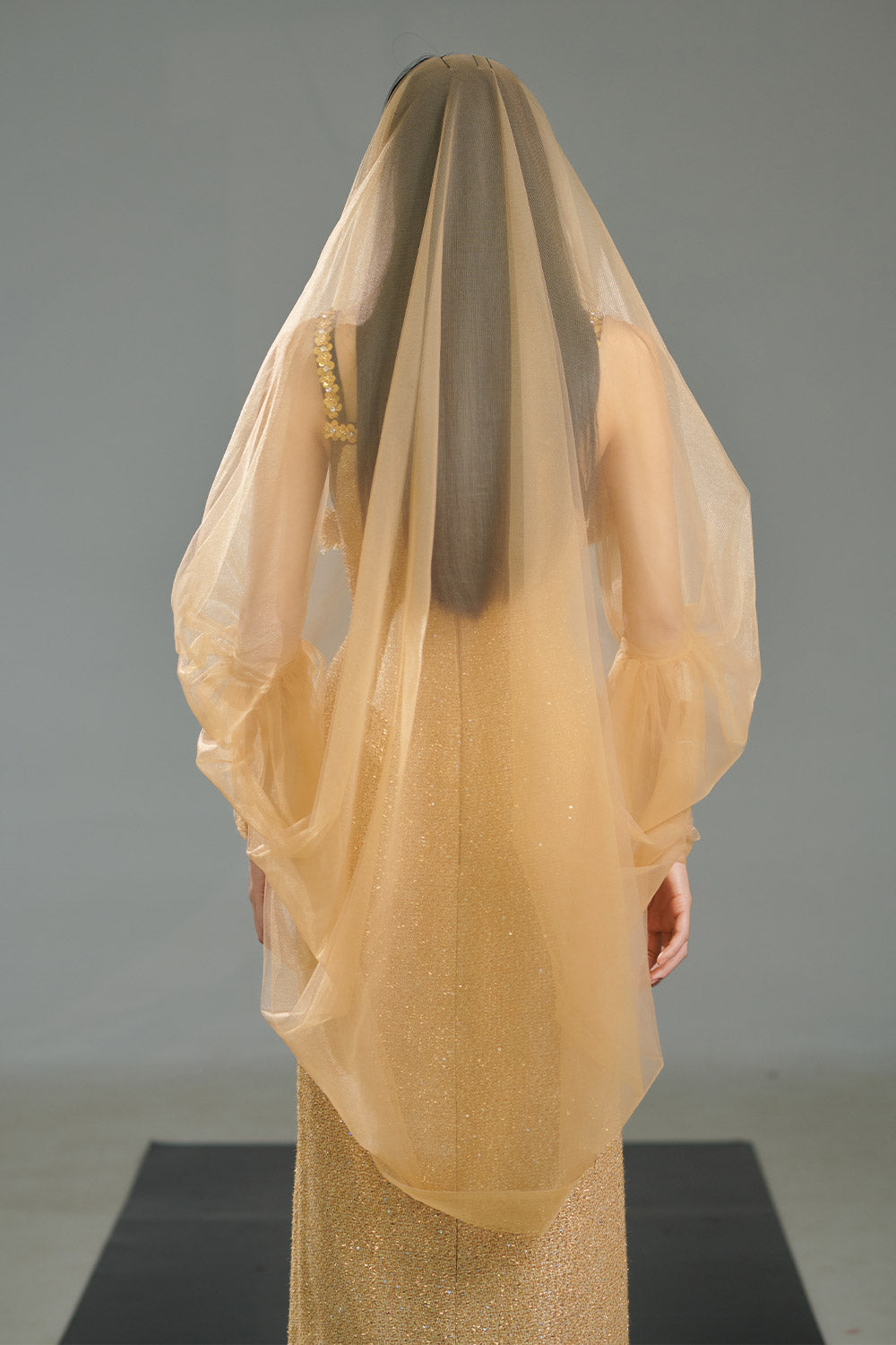 • Special Features: 3D flowers, Attached stones along the center, Front slir, Sheer shawl with bishop sleeves