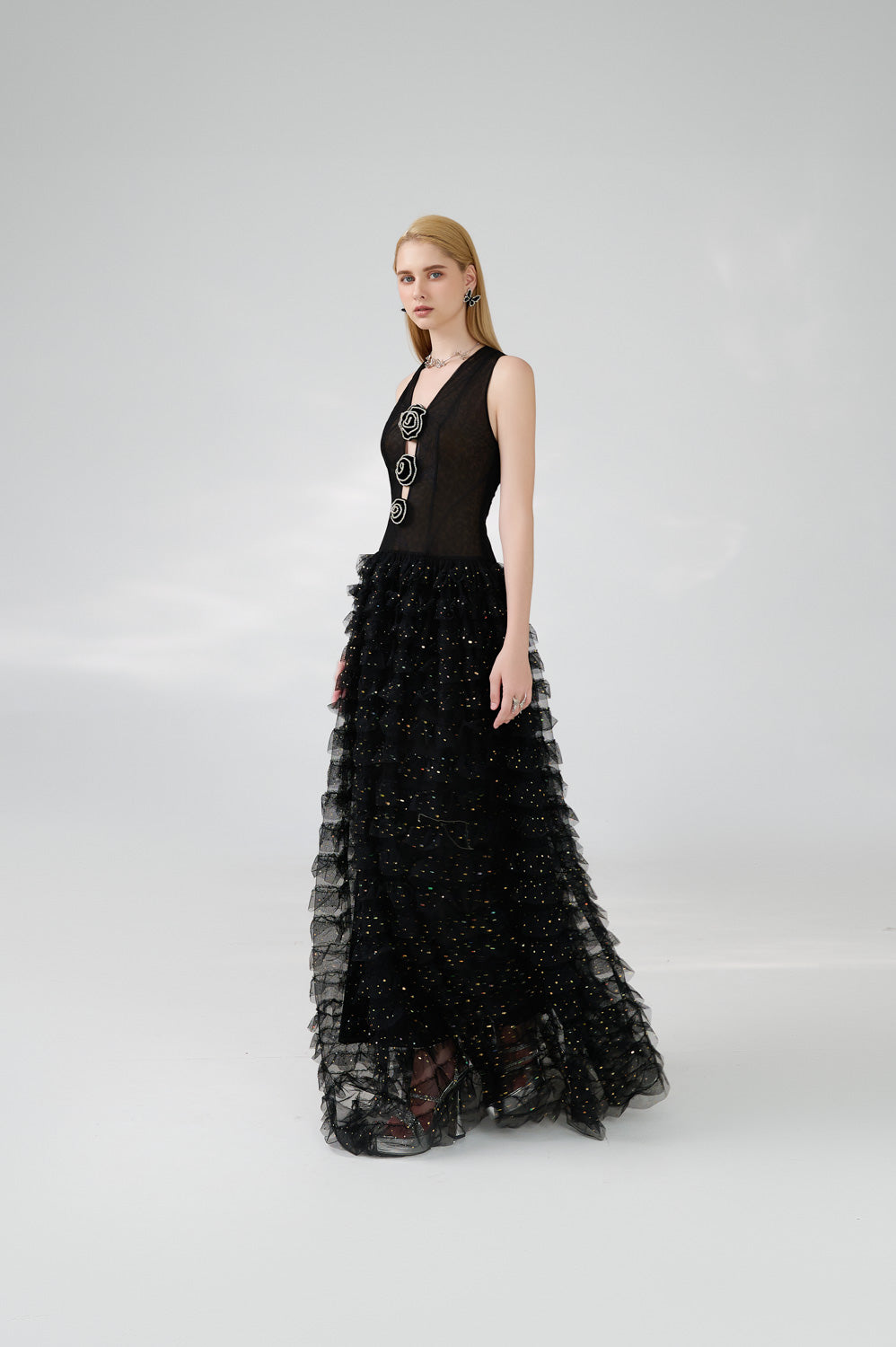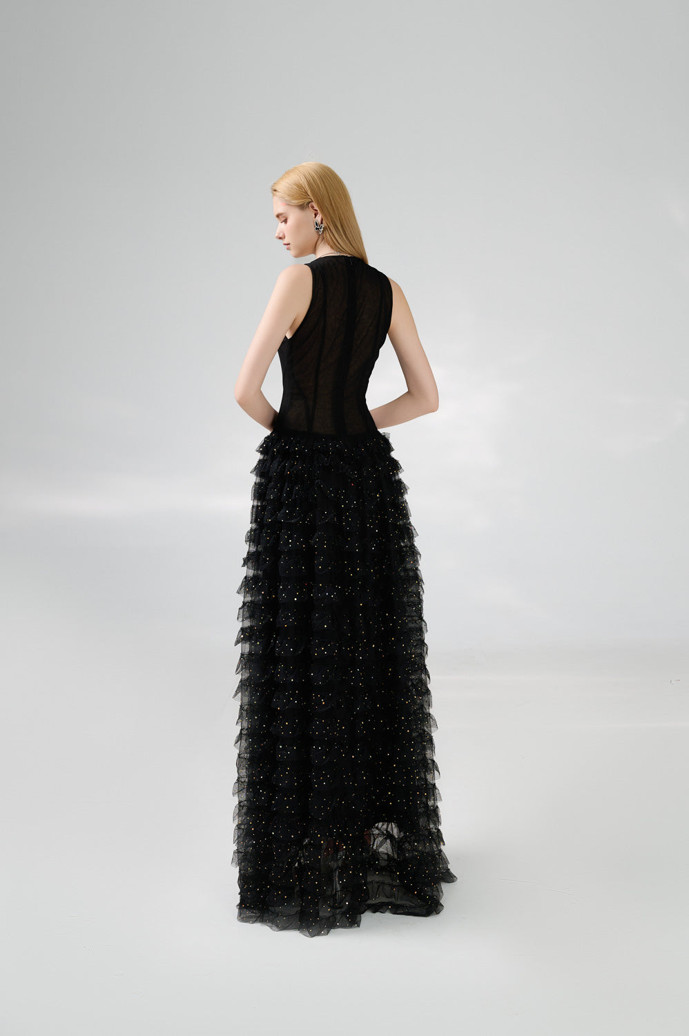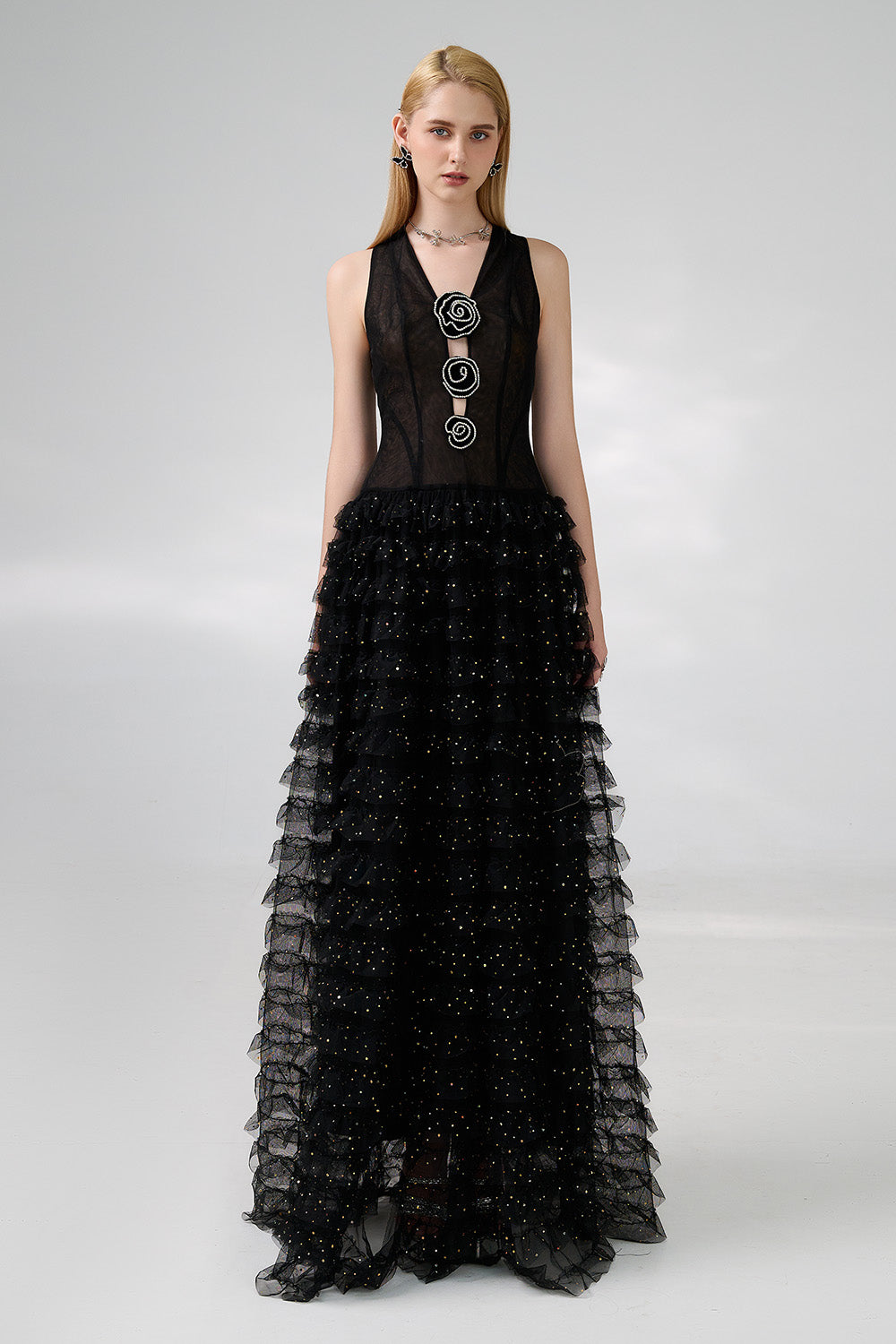 Maddox Layered Sleeveless Organza Floor Length Dress
