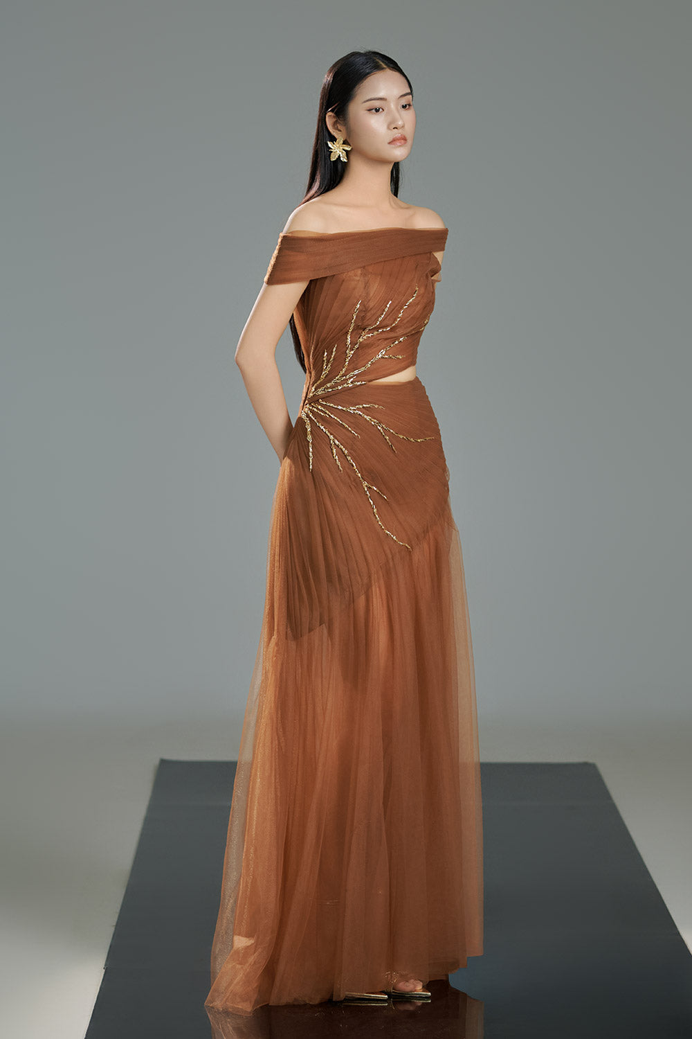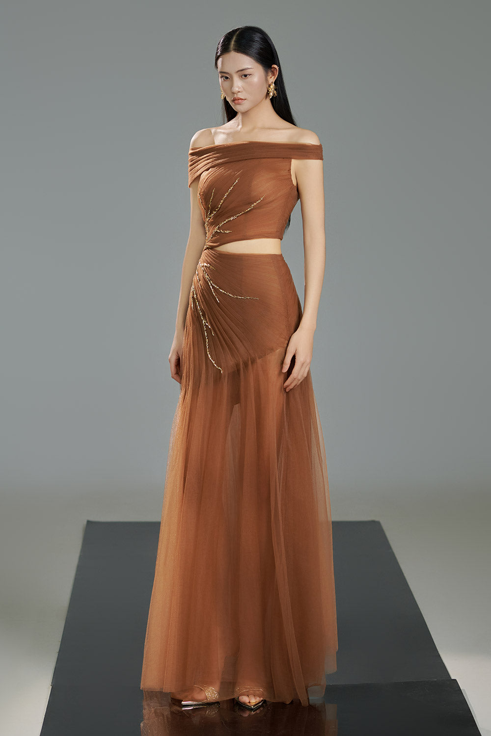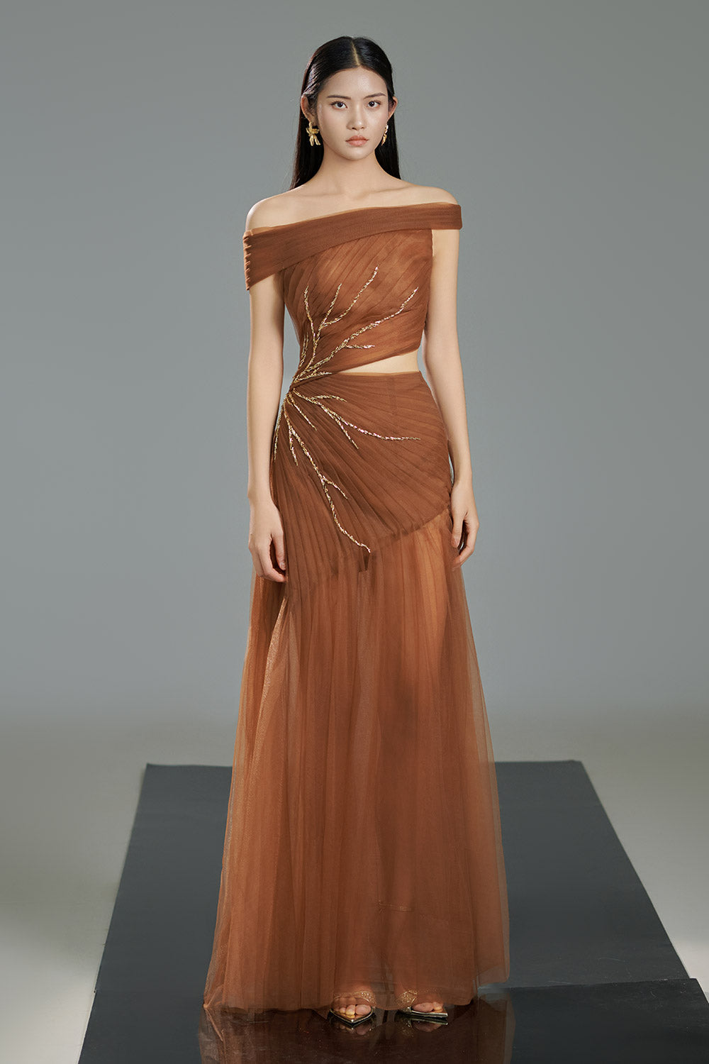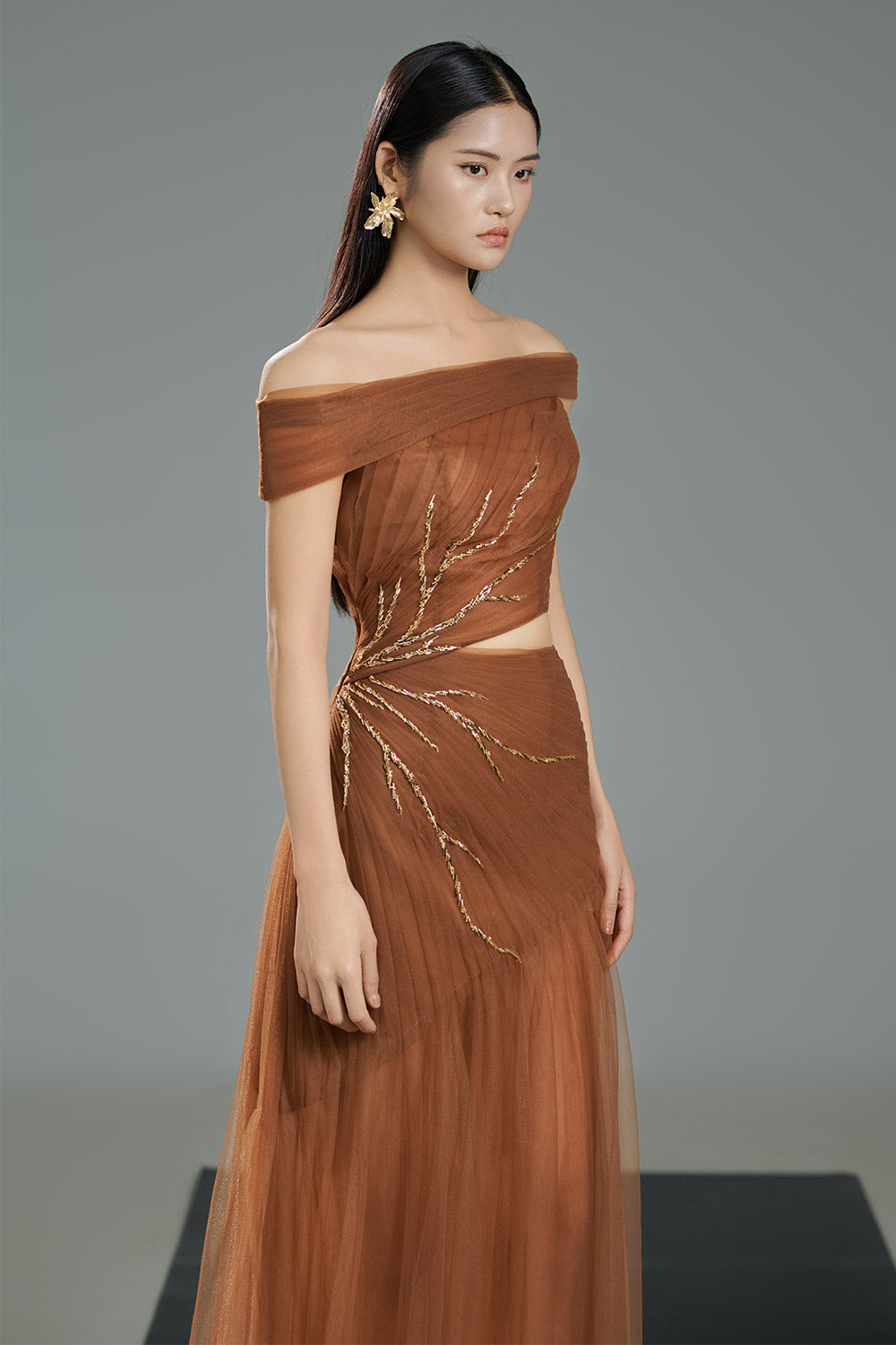 - Special Features: Open shoulder, Cut-out at the waist, Attached stones, Drop waist design, Pleated bust and waist
