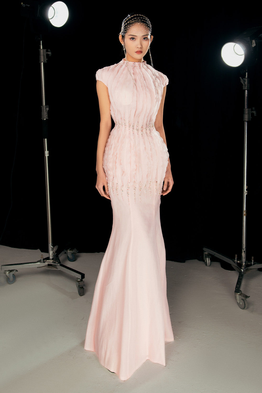 This exquisite dress features delicate cap sleeves and is crafted from the finest silk organza. Elevate your style with the stunning silhouette and feel like a mermaid on land.